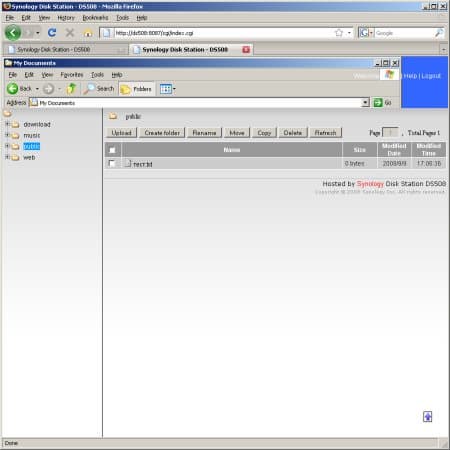 Доступ к файлам через браузер («File Station») может работать через отдельный порт и с видоизмененным пользователем интерфейсом. Также поддерживается право «только запись».