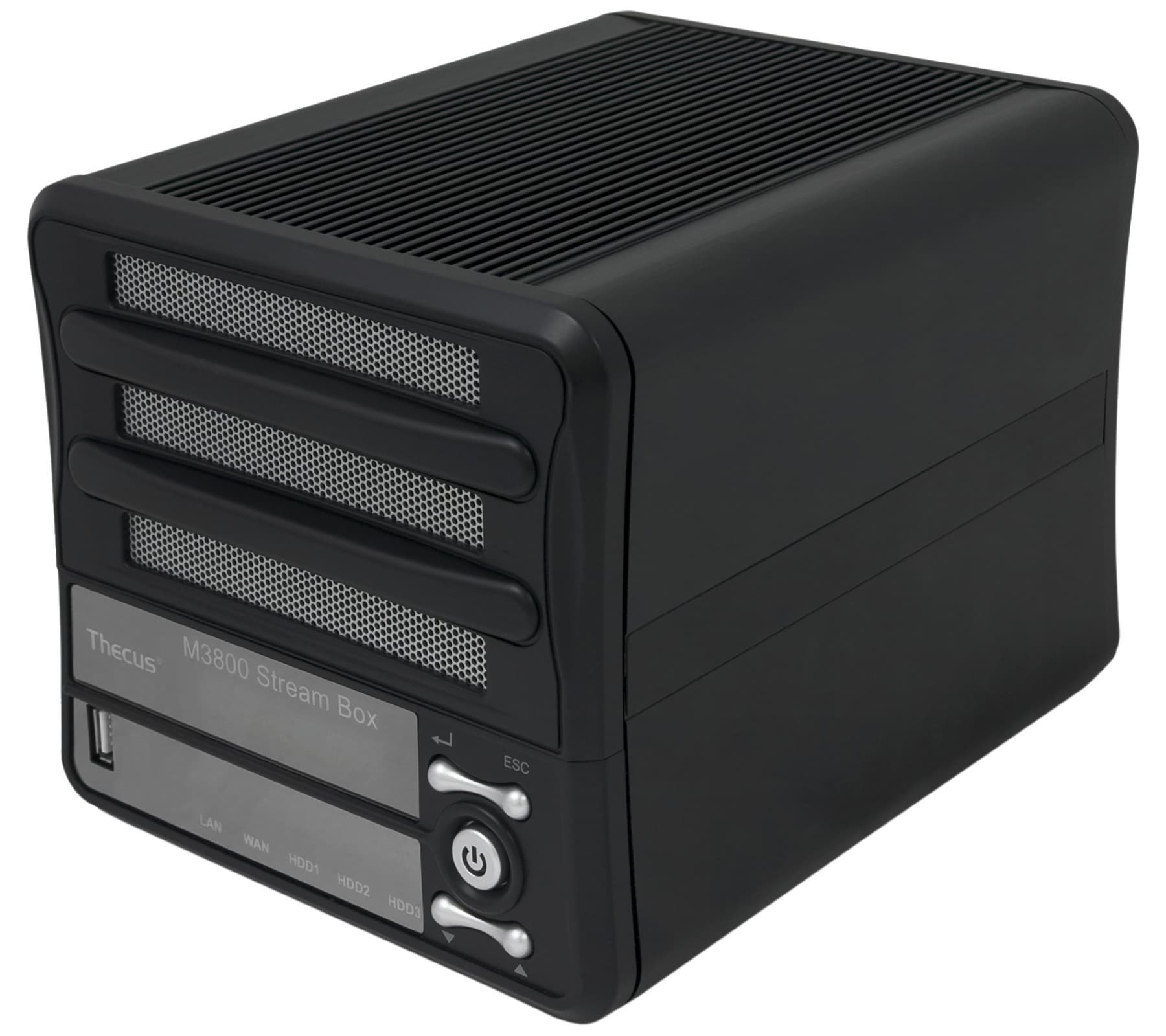 Возможности стандартны для устройств марки Thecus — сетевой накопитель на три винчестера с поддержкой массивов JBOD, RAID0/1/5, папок с устанавливаемыми для пользователей правами, сетевых протоколов SMB/FTP/NFS, медиасерверов DLNA и iTunes, автономной загрузкой файлов по HTTP/FTP/BitTorrent. Расширение возможностей допускается через устанавливаемые пользователем модули. Модель M3800 от остальных сетевых накопителей отличает встроенный функционал медиаплеера — при подключении к телевизору или другому устройству отображения можно просматривать фотографии и видеролики, а также слушать музыку.