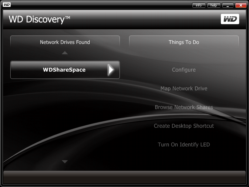 На диске представлено несколько фирменных программ. Первая из них — WD Discovery — используется для поиска накопителя в сети и некоторых часто используемых задач, таких как подключение сетевого диска (утилита не локализована, есть версия только для Windows).