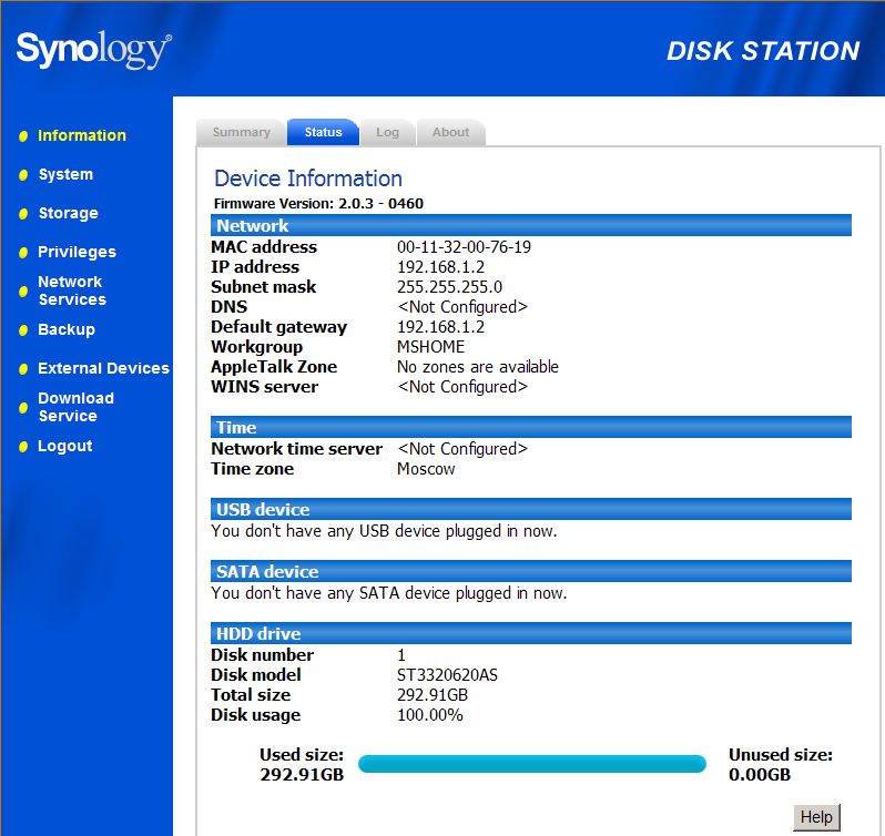 Приятно удивило, что DS-101g+ не испытывает традиционных проблем с русскими названиями файлов — там где многие другие NAS'ы (в частности при использовании USB COPY) превращают в их труху, DS-101g+ выполняет всё корректно.