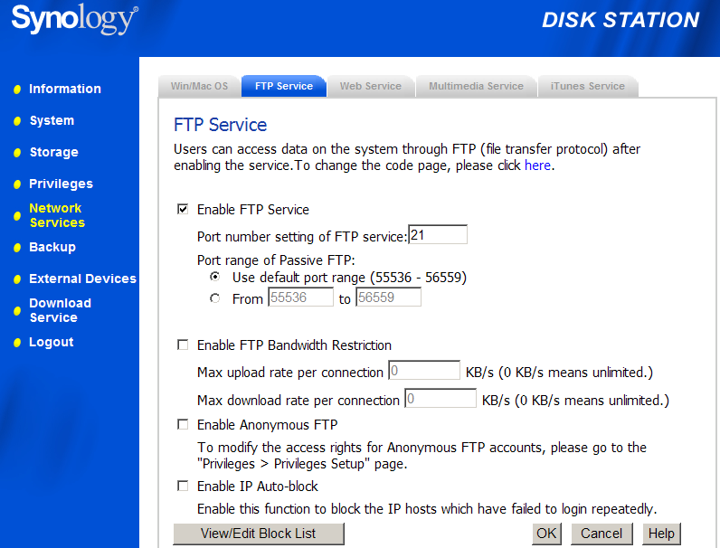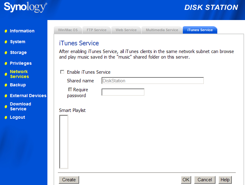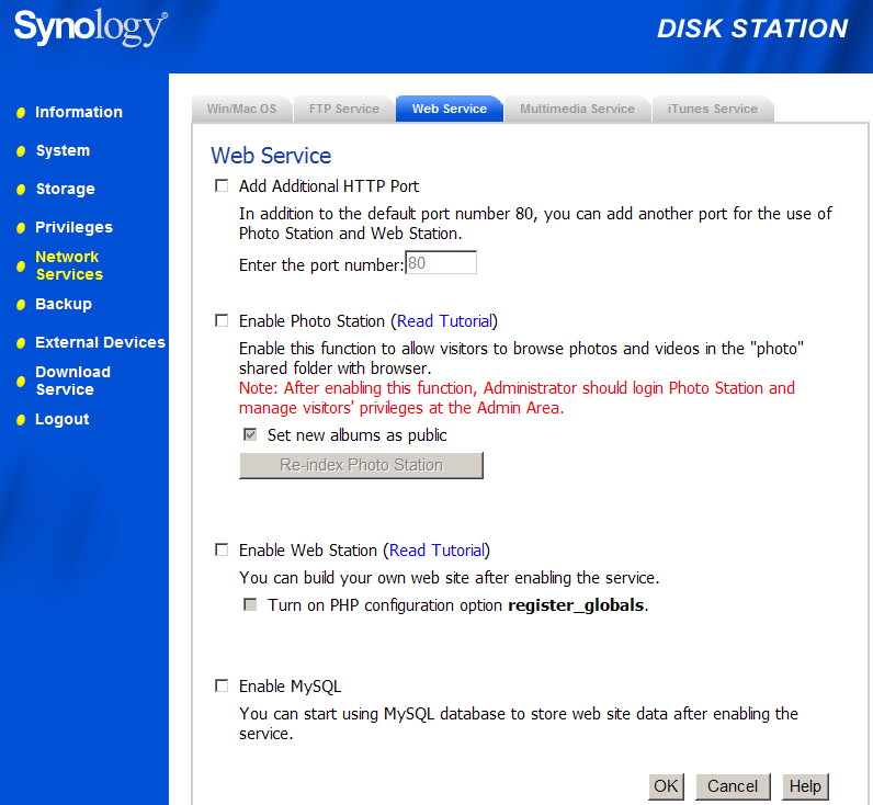 - возможность быстрой организации альбомов из своих фотографий (Photo Station II в меню Web Services);