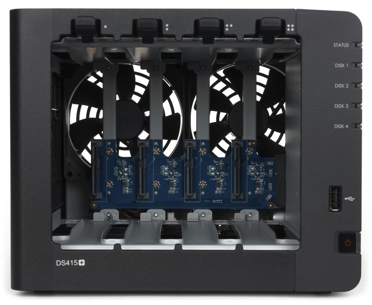 Представленный осенью прошлого года четырехдисковый сетевой накопитель Synology DS415+, как и несколько других устройств 15-го поколения данного производителя, основан на специализированном чипе Intel Atom C2538 из линейки «процессоров для коммуникаций». В отличие от некоторых других компаний, в Synology не стали использовать платформы, оборудованные выходом HDMI и способные реализовать мультимедийные функции. Однако использование мощного четырехдискового сетевого накопителя как медиаплеера все равно является сегодня спорным решением, тем более что многие ТВ имеют встроенные сетевые возможности.