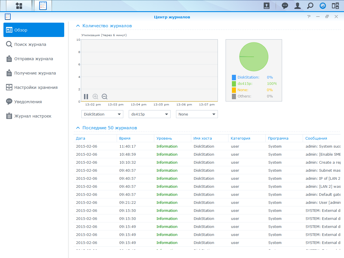 В разделе «Информационный центр» предоставляются системные данные о сетевом накопителе, текущий статус устройства, дисковых томов, сетевых интерфейсов и служб. Встроенный планировщик позволяет автоматизировать некоторые задачи и отчеты, а также управлять работой служб по расписанию.