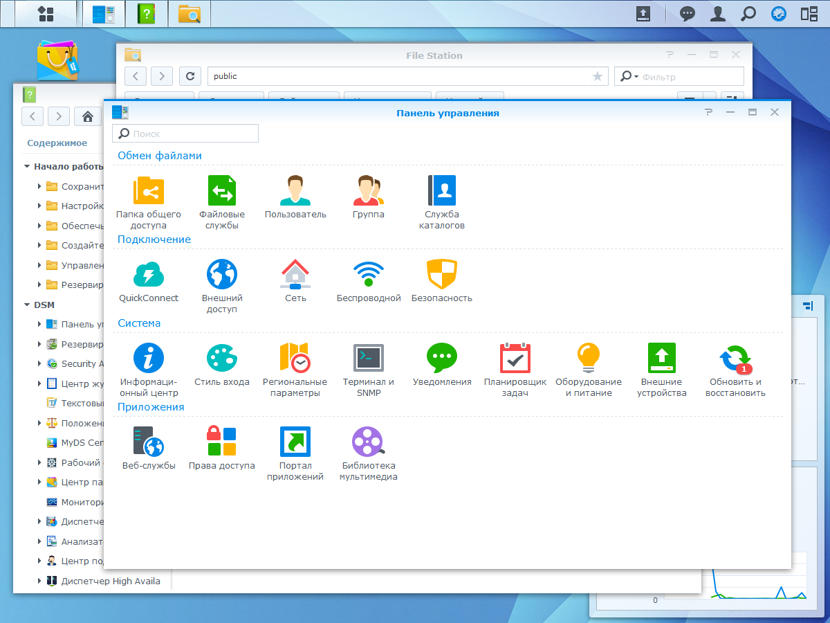 Сетевые накопители Synology уверенно входят в группу наиболее функциональных моделей на рынке. Мы уже неоднократно описывали возможности встроенного программного обеспечения, и повторяться смысла нет. Последнее крупное обновление было осенью прошлого года. В версии DSM 5.1 появилось множество новых функций, включая сервис анализа безопасности, автоматическое обновление прошивки, контроль привилегий приложений, кэш на SSD, анализ занимаемого данными пространства и многие другие. Были усовершенствованы и расширены функции резервного копирования, работы с облачными хранилищами, интеграции с виртуальными системами. Набор предлагаемых дополнительных пакетов пополнился новыми программами, а возможности существующих заметно улучшились.