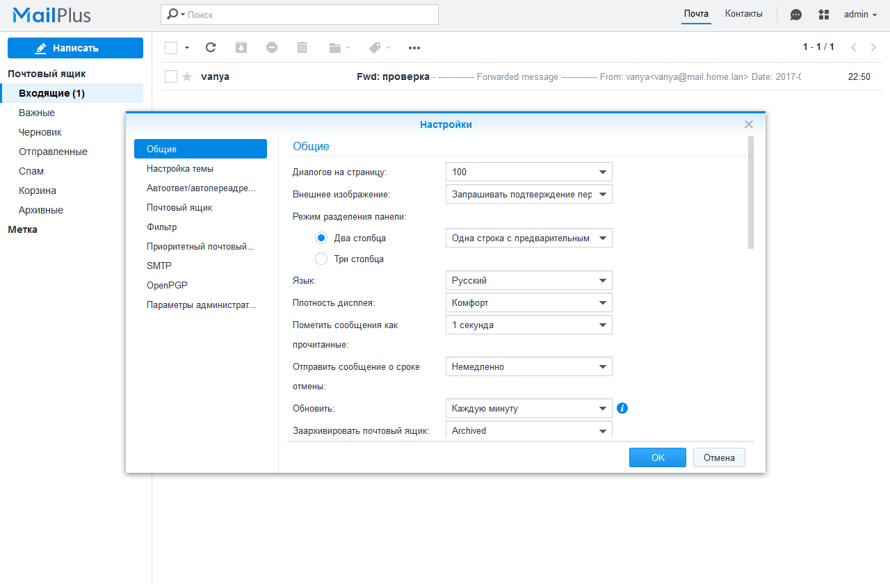 Электронная почта продолжает оставаться одним из наиболее распространенных способов обмена информацией и конечно не удивительно, что этот сервис можно реализовать на сетевом накопителе. Отметим, что в настоящий момент компания предлагает два пакета — «обычный» почтовый сервер и расширенную версию MailPlus. Вторая будет более интересна бизнес-сегменту поскольку предлагает множество актуальных для него дополнительных возможностей. В частности речь идет о защите от спама, антивирусе, масштабируемости, мониторинге нагрузки, квотах, автоответах и автоматической пересылке, а также многих других функциях. Однако отметим, что эта версия идет в базовой поставке с лицензией только на пять пользователей, а если нужно больше — потребуется их дополнительно покупать.