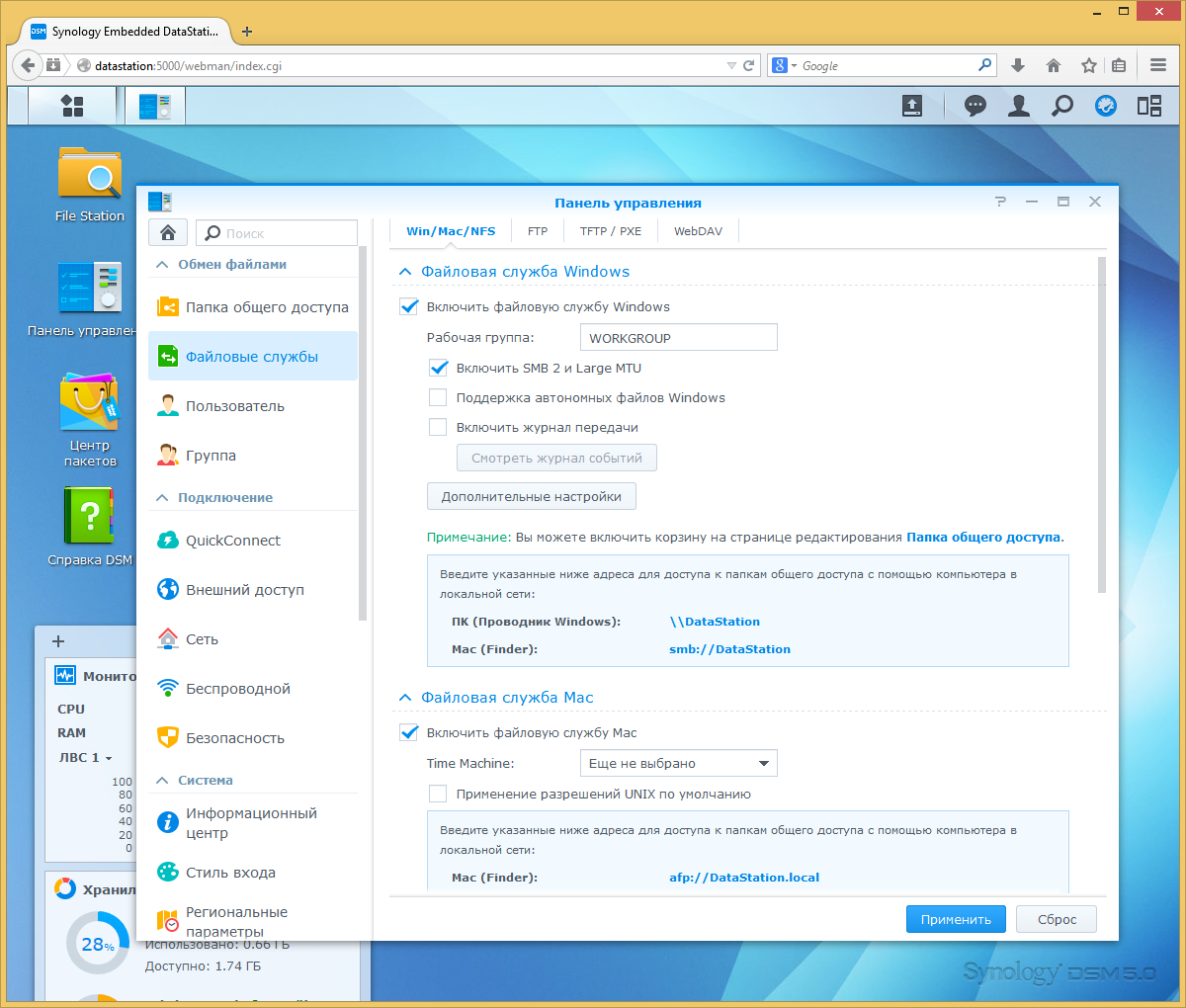 А вот набор поддерживаемых протоколов не изменился — присутствуют SMB/CIFS (включая SMB 2), AFP, NFS, FTP и WebDAV.