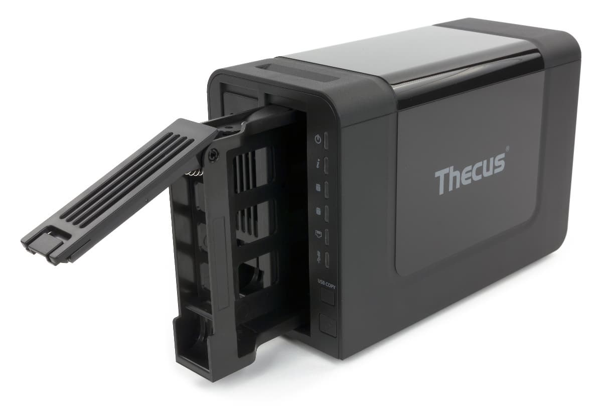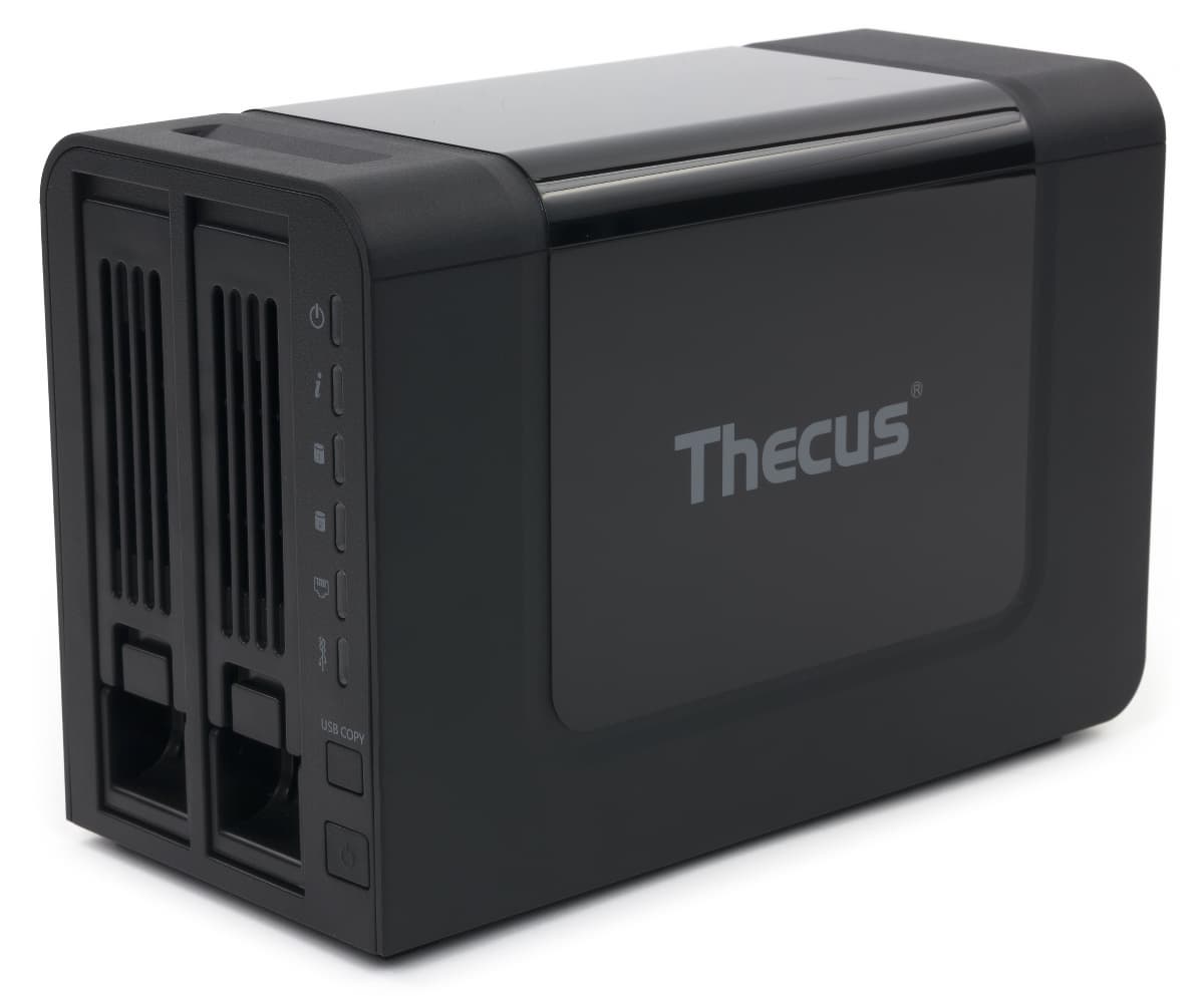 Для своей младшей модели сетевого накопителя компания Thecus выбрала достаточно редко встречающуюся платформу Applied Micro с архитектурой PPC. Несмотря на относительно невысокую тактовую частоту процессора, в тестах производительности устройство показало хорошие результаты в своем классе, при этом его потребление находится на низком уровне. Так что мы еще раз убедились в том, что не стоит судить только по мегагерцам. Отметим, что некоторые характеристики устройства, в частности большой объем оперативной памяти и наличие порта USB 3.0, выделяют его среди конкурентов.