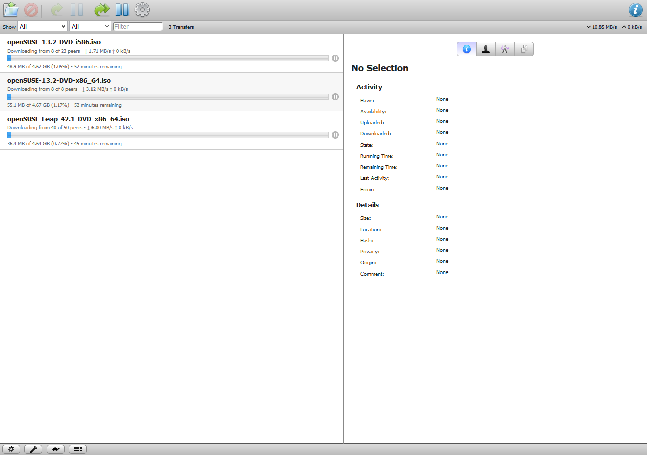 Скорость загрузки файлов на популярных задачах может превышать 10 МБ/с (проверялось на канале 100 Мбит/с, так что это, скорее всего, уже его ограничение). Нагрузка на процессор и память в этом режиме составляла около 40%.