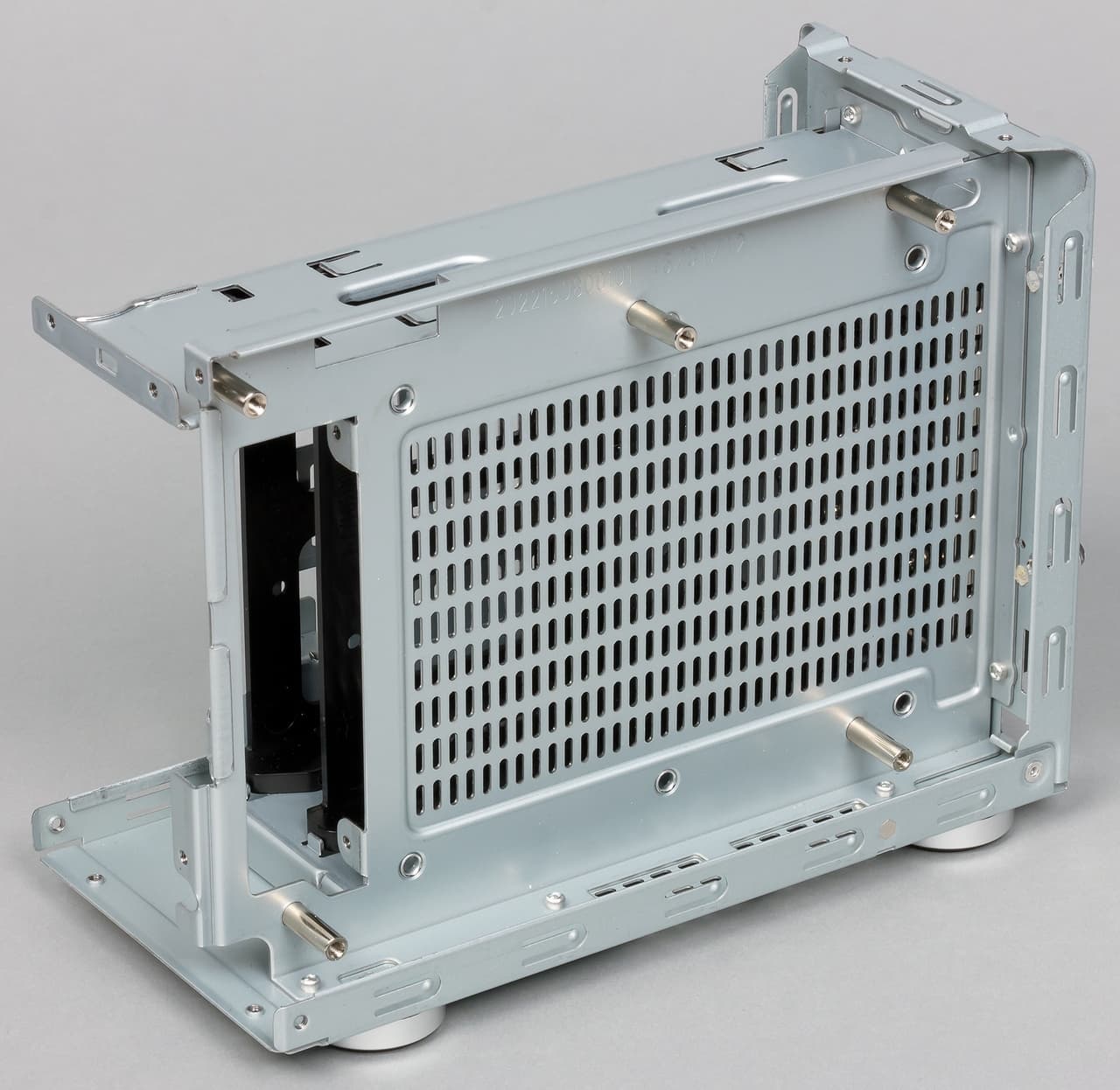 Сверху корпус закрыт металлическим кожухом. На нем нет никаких вентиляционных отверстий или других элементов. Заметим, что в обычных режимах эксплуатации внутри пользователю делать особо нечего, если только почистить/поменять вентилятор или нарастить объем оперативной памяти. Правда, для этих операций придется повозиться: большинство соединений внутри винтовые, и их достаточно много.