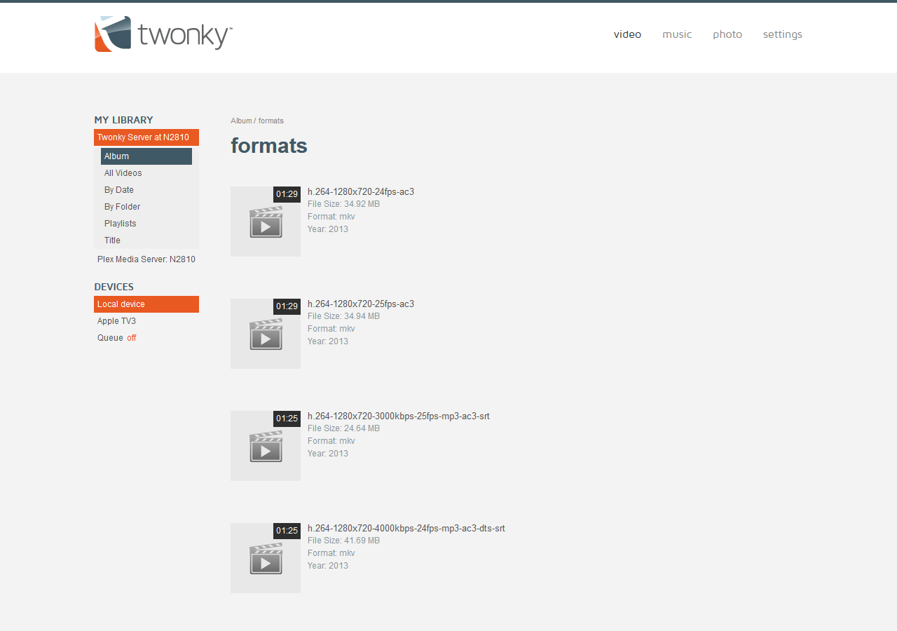 Формальные характеристики использованного в сетевом накопителе Intel Celeron N3050 достаточно интересны: видеовыход HDMI 1.4b с поддержкой 3840×2160p30 и 2650×1600p60, а также вывода цифрового HD-звука и декодирование форматов H.264 4Kp60 и H.265 4Kp30. Также для него заявлена поддержка стереокодека MVC до 4Kp30, не говоря уже о таких вариантах прошлых поколений, как MPEG2 и VC-1. Кроме того, этот чип оборудован блоком кодирования, который способен выдавать поток с H.264 до 4Kp30. Ситуация существенно осложняется тем, что для реализации всех этих возможностей обязательна поддержка со стороны программного обеспечения, в частности системных библиотек и программ плееров и транскодеров.