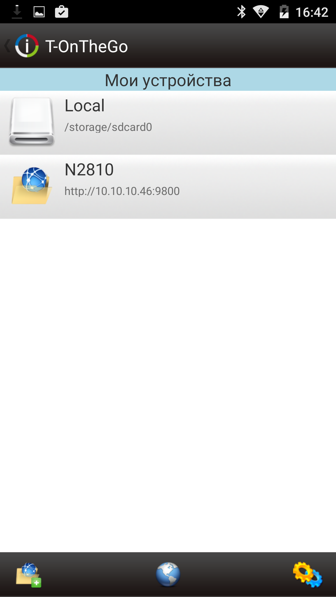 Компания предлагает два приложения для мобильных платформ Android и iOS, которые могут использоваться совместно с сетевым накопителем. Благодаря поддержке стандартных протоколов, в частности FTP, получить доступ к файлам на NAS со смартфона и планшета можно и в других программах. Однако фирменная T-Dashboard, которая заявлена как средство мониторинга за работой сетевого накопителя, требует установки на устройство специального модуля поддержки, который отсутствует для N2810. Так что, по сути, остается только программа T-OnTheGo.