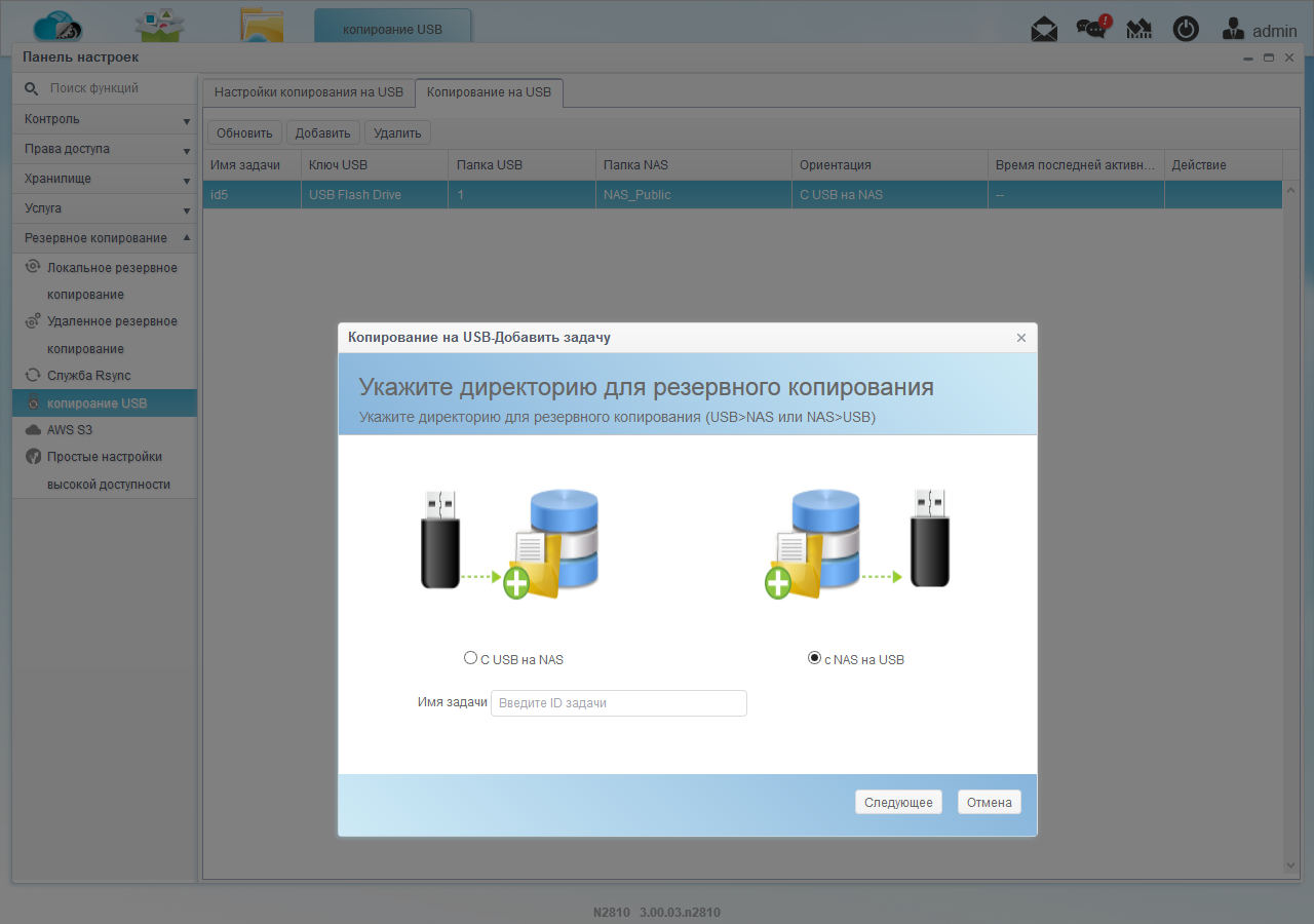 В этой же группе на отдельной странице находятся настройки функции кнопки на лицевой панели накопителя. В частности, можно выбрать вариант копирования всех файлов с внешнего носителя в указанную сетевую папку или же запрограммировать свой набор операций в любом из двух направлений и с любыми папками.