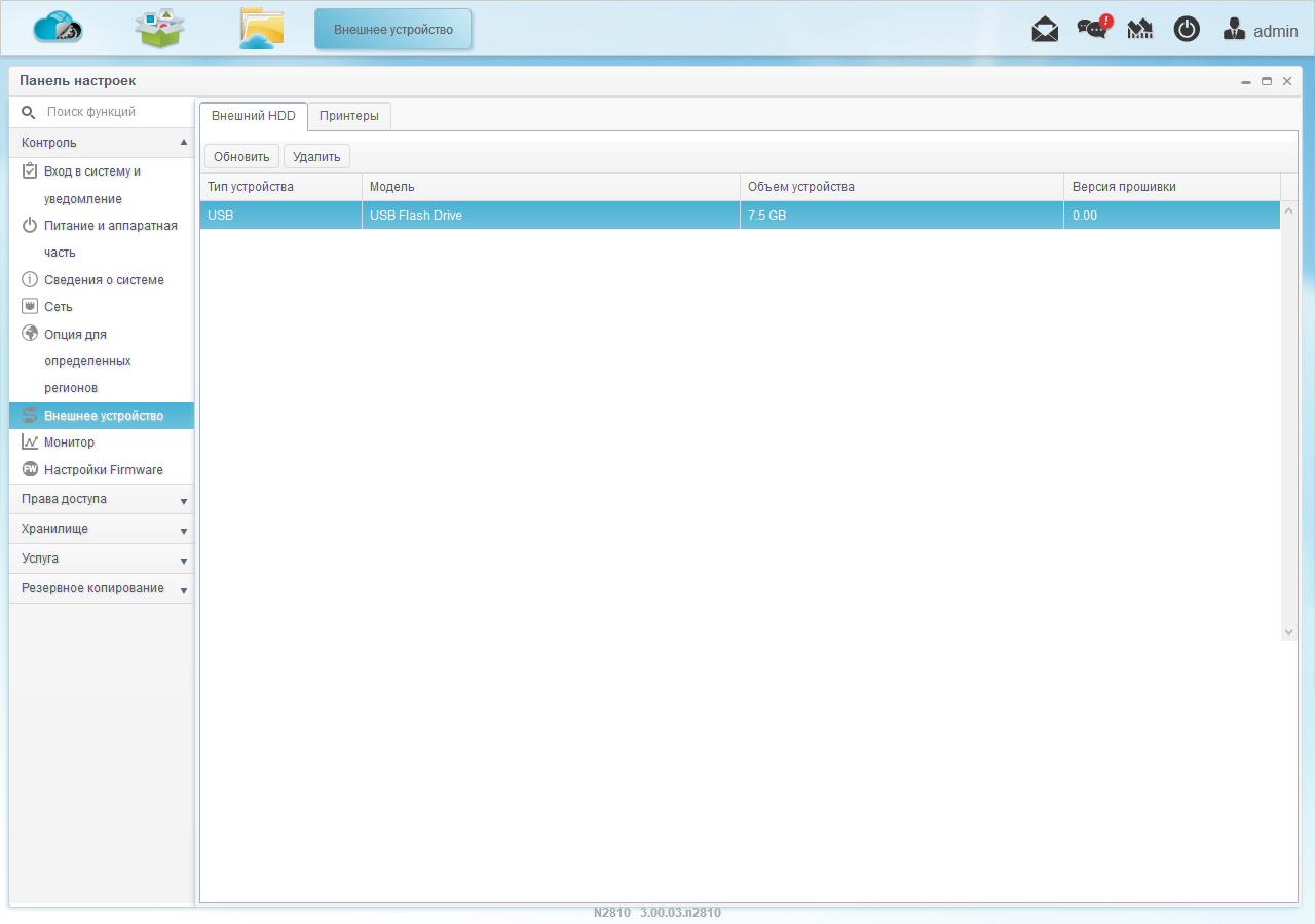 Порты USB могут быть использованы для подключения дисков, принтеров и ИБП. Все накопители монтируются в подпапки единого сетевого ресурса. Никаких операций, кроме безопасного отключения, для них не предусмотрено. В данном сценарии можно использовать и на чтение, и на запись разделы с файловыми системами EXT2/3/4, FAT32, NTFS, HFS+ и даже exFAT.