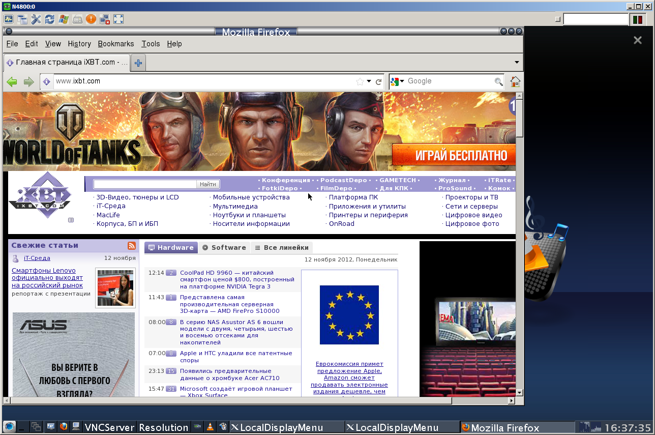 Второй необычный модуль, о котором мы упоминали в прошлой статье, называется Local Display. Он позволяет задействовать графический контроллер процессора для вывода картинки по HDMI или VGA. Сам по себе он мало что дает, поскольку реализует только интернет-браузер и консоль. Однако есть поддержка удаленного доступа к рабочему столу через VNC, так что при необходимости можно использовать устройство в качестве Linux-терминала.