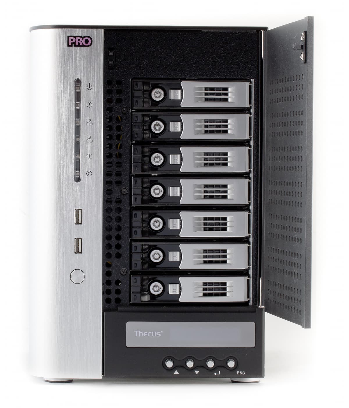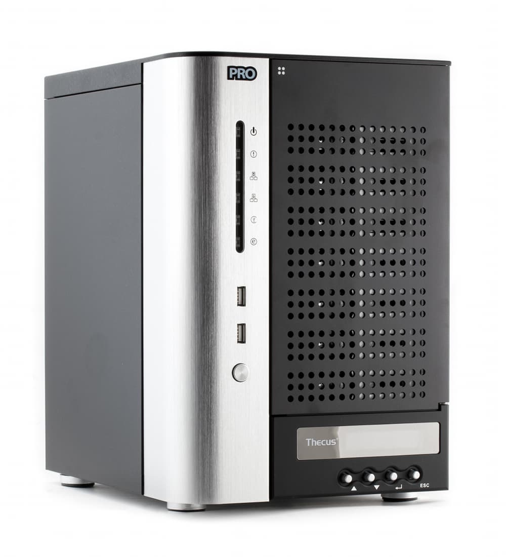 Компания Thecus, созданная в 2004 году, специализируется на выпуске сетевых хранилищ и имеет в своем арсенале почти три десятка моделей. Есть среди них и домашние устройства, но большинство относится к корпоративному сегменту — топовая модель имеет четырехъядерный процессор, 8 ГБ оперативной памяти, три сетевых интерфейса и 16 отсеков для дисков.