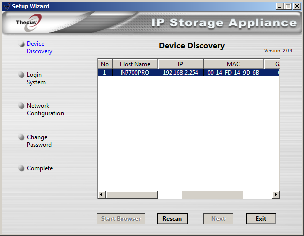 В случае необходимости использования именно сетевого доступа для настройки можно воспользоваться программой Thecus Setup Wizard для поиска накопителя в сети и изменения некоторых его основных параметров. Отметим, что после изменения порта web-интерфейса на нестандартный программа не может обнаружить NAS в сети, что не очень удобно. Впрочем, всегда можно воспользоваться матричным дисплеем для определения IP-адреса.