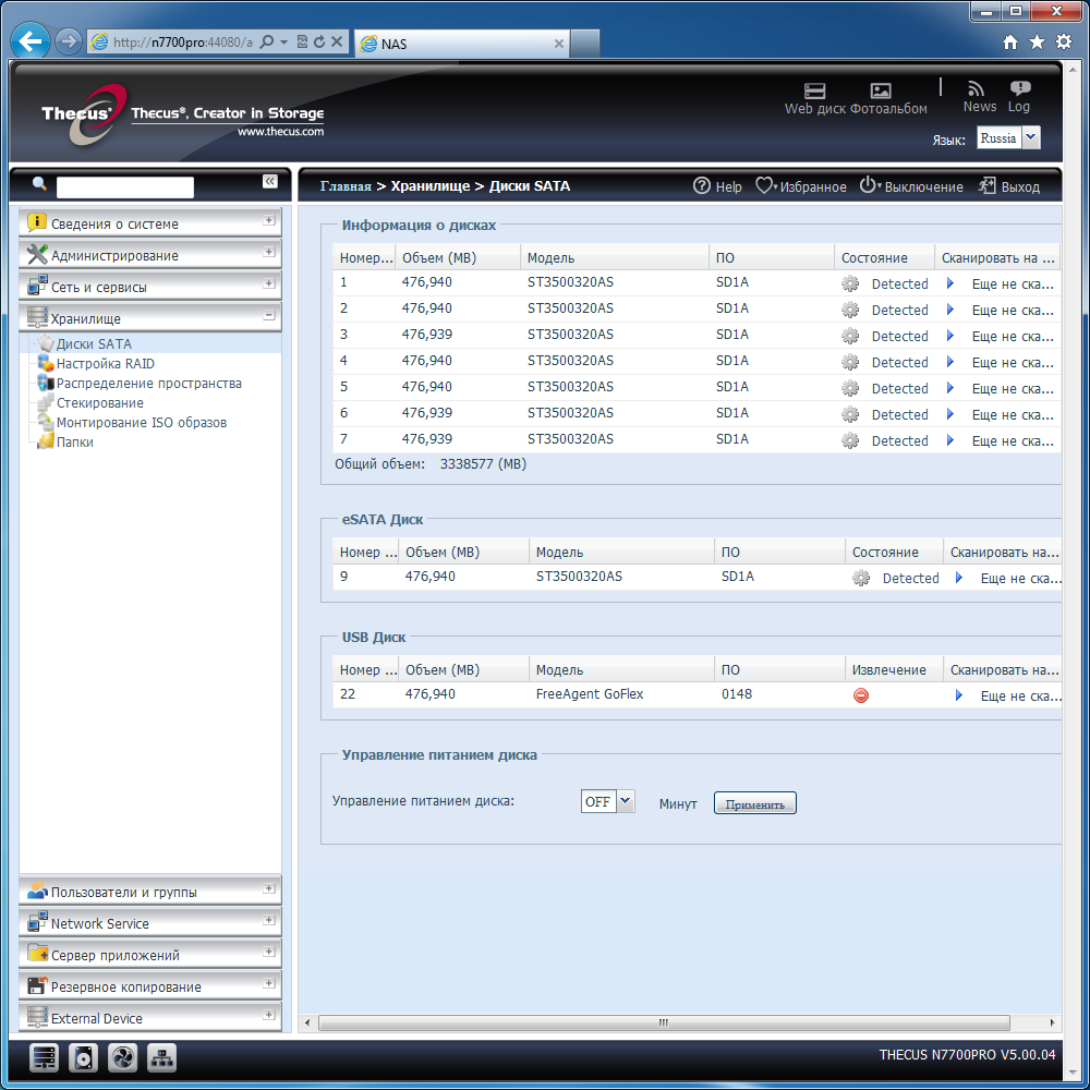 Конечно, тестировать такое высокопроизводительное устройство наверняка интересно, но наши технические возможности не позволят нам адекватно оценить его производительность. Так что мы остановились на модели N7700 Pro, которая работает «всего» с семью винчестерами.