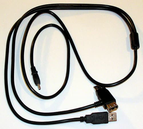 Задняя панель корпуса TT Muse 2.5 тоже предельно лаконична — порт USB 2.0 и разъем для подачи внешнего питания, если такового окажется вдруг недостаточно по шине USB, что маловероятно, поскольку в комплекте предусмотрен специальный разветвленный кабель, представление о котором дает следующее фото.