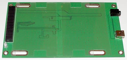 Печатная плата контейнера ТТ тоже тривиальна, хотя и массивна (в отличие от мизерных плат некоторых других подобных устройств). С одной ее стороны находятся три разъема и изолятор,