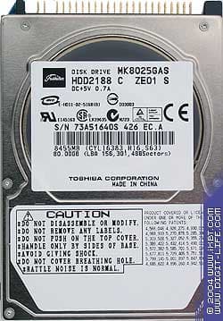 Сегодня мы подробно рассмотрим диски, которые уже сейчас можно отнести к низшему классу семейства ноутбучных. Ныне все фирмы-игроки этого рынка выпустили диски на 5400 rpm, а Hitachi пошла дальше и представила первый диск форм-фактора 2.5″ на 7200 rpm. Поскольку различия в корпусах дисков невелики, чтобы не загромождать обзор, приведем фото только одной модели — 8025GAS.