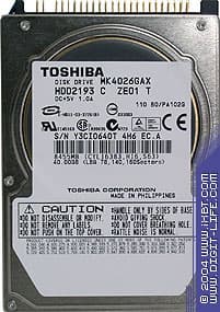 Более новая модель. Отличается от предыдущей плотностью записи, которая практически в полтора раза больше, а также уменьшенным временем доступа track-to-track и full stroke.Toshiba MK4026GAX