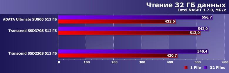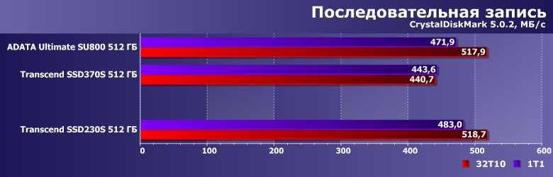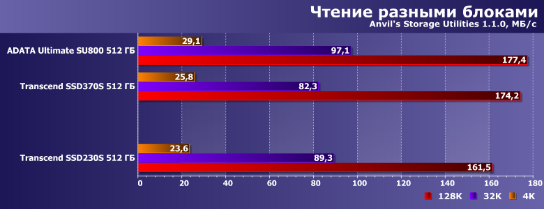 | AData Ultimate SU800 512 ГБ | Transcend SSD370S 512 ГБ | Transcend SSD230S 512 ГБ |