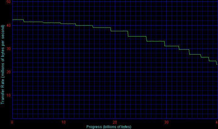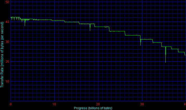 Как в случае подключения к USB 2.0, так и в случае подключения к FireWire, запись CD-R дисков на максимальной скорости (24х) прошла успешно, не было обнаружено каких-либо проблем. Та же ситуация наблюдалась и в случае подключения DVD-ROM Pioneer. Ниже приведены результаты копирования содержимого СD и DVD диска на жесткий диск.