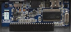 Отмечу, что никаких средств жесткой фиксации винчестера в модуле не предусмотрено, хотя реализовать их было бы можно — достаточно было чуть изменить конструкцию крепления крышки: взять болтики подлиннее, дабы через пластиковую рамку они просто проходили, а вкручивались уже в накопитель, благо крепежные отверстия на последних почти там, где нужно. С другой стороны, при этом все внешние воздействия напрямую «трясли» бы винчестер, так что, может быть и хорошо, что по данному пути в компании не пошли. В принципе, ничего нигде не трясется, не продавливается и т. п. так что конструкция получилась достаточно надежной. Да и платка с контроллером, соединяемая с винчестером «встык», крепится к самому модулю жестко, так что и жесткий диск заодно придерживает. Что касается контроллера, то изучение маркировки показало, что имеем мы дело с CY7C68300 EZ-USB AT2+ от компании Cypress Semiconductor. Применяется данная микросхема очень часто, поскольку, несмотря на возраст в районе пяти лет уже, поддерживает все, что требуется от подобного чипа: стандарты РАТА давно не модернизировались. В частности, согласно спецификациям, поддерживаются винчестеры любого объема, в том числе и новомодные 160 Гбайт, что на сегодня является пока максимумом для продающихся ноутбучных винчестеров. Именно этот контроллер используют в своих накопителях и Floston, и Thermaltake, и Western Digital в обновленном Passport, и многие другие. Причем, любопытная деталь — только WD озаботился оригинальным дизайном для внутренностей своего устройства, в то время как большинство производителей собственно коробочек явно используют чью-то разработку: большая печатная плата, размером во весь модуль, на которую винчестер укладывается, чаще всего, фиксируется винтовым креплением, но до этого задвигается в разъем, расположенный на стороне, удаленной от самого USB-разъема. Другими словами, по сути, имеем мы достаточно длинные проводники — как интерфейсные, так и для подвода питания. В IB-270, как я уже сказал, плата маленькая, подключается «встык», так что все «провода» на ней короткие. Почему я заостряю на этом внимание? Потому, что такая, казалось бы, мелочь, напрямую сказывается на эксплуатационных характеристиках ВЖД. В частности, имеющий классический дизайн модуль от Floston мне во время тестирования пришлось в обязательном порядке обеспечивать дополнительным питанием, в то время, как IB-270 отлично обходился одним USB-портом. Такое вот принципиальное различие при использовании одного и того же винчестера и одного и того же USB-кабеля! Разумеется, если взять менее прожорливый винчестер, нежели тестовый стогигабайтный Momentus 5400.2, и более короткий кабель, данное различие нивелируется — обоим питания от одного порта хватит. Равно как и в случае некачественного кабеля оба вели бы себя тоже одинаково, потребовав дополнительного питания. Но, все же, плюсы используемой RaidSonic конструкции есть, причем не только в теории, а и легко получаемые на практике, и от этого никуда не деться. Так что при поисках внешнего модуля наименее требовательного к качеству питания будет наш сегодняшний герой одним из самых оптимальных вариантов :)