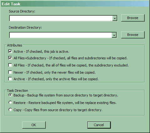 Для реализации копирования информации используется достаточно простая утилита IniBackup, имеющаяся на прилагаемом компакт-диске. Основное окно программы сильно напоминает все, виденное нами ранее. Создаем одно или несколько заданий (при необходимости, их параметры позднее можно будет изменить), после чего любоваться на него будет не за чем. Конечно, только если захочется запустить вручную какое-либо из заданий, хотя кнопкой удобнее :)