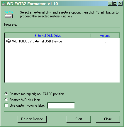 Также на сайте присутствует и специальная утилита External USB/FireWire Fat32 Formatting Utility двойного назначения. Основное — форматирование устройства под FAT32, что и следует из названия. Изначально с завода накопители поставляются именно с данной файловой системой, являющейся наиболее универсальной. Фактически, только она полностью совместима как с компьютерами, причем работающими не только под управлением современных версий Windows, но и с устаревшими версиями последней, и с «альтернативными» операционными системами, так и с разнообразной бытовой техникой, обладающей поддержкой USB-накопителей (что в последнее время совсем не редкость). Однако есть у FAT32 и ряд серьезных недостатков, касающихся производительности, надежности и поддержки файлов большого размера, в рамках данной ФС неустранимых. Соответственно, у пользователя вполне может возникнуть соблазн переформатировать накопитель под NTFS, особенно если его интересуют исключительно системы от Microsoft, начиная с Windows 2000. Выполнить данную операцию просто — штатными средствами системы. А обратный процесс сложнее — Windows 2000 и более новые системы «не желают» форматировать под FAT32 разделы, емкостью более 32 ГБ. Единственная возможность сделать это — использовать альтернативный форматер. Например, предлагаемый WD. Компанию можно только похвалить за такую заботу.