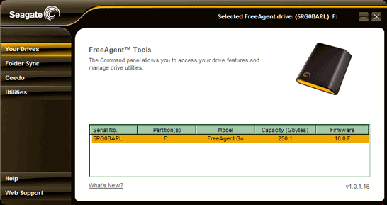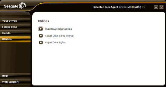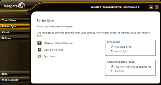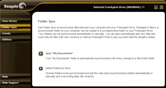 Программное обеспечение состоит из программы Folder Sync, некоторого количества служебных и настроечных утилит, интегрированных в уже привычную нам по другим продуктам с торговыми марками Seagate и Maxtor, а также одной сторонней утилиты Ceedo. Начнем с основного пакета.