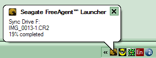 Для каждого синхронизируемого компьютера программа создает собственную папку в скрытом каталоге «FreeAgent Sync», куда копируются отобранные файлы. Статус синхронизации, кстати, умеет показывать и Launcher, что видно на скриншоте. Никакой обработки файлов (архивирования или шифрования) не производится.