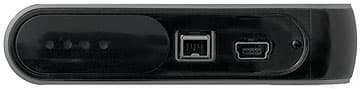 Studio от Elite внешне отличает только одно — наличие еще одного интерфейсного разъема под скользящей пластиковой крышкой на одном из торцов. К сожалению, им стал четырехконтактный разъем FireWire, то есть не имеющий питания. В результате, для подключения устройства к компьютеру придется использовать специальные кабели, поскольку питание подается только через разъем USB mini-B. Такая схема работы не нова — мы с ней знакомились еще в обзоре первой модификации IDS ZIV Pro. Однако она всегда вызывала нарекания пользователей (которым приходилось использовать только фирменные кабели), так что компания IDS со временем от нее отказалась, но Western Digital — нет: даже в обновленных Studio, анонсированных конце прошлого года и отличающихся от представителей тестируемого нами поколения поддержкой FireWire 800, все та же не самая приятная ситуация с разъемами. Впрочем, нам удалось провести тесты, воспользовавшись вместо фирменного кабеля двумя: «стандартным» USB для питания и 6-4 FW для передачи данных. В нашей модели FireWire 800 все равно не было, да и применение этой модификации интерфейса на компьютерах под управлением Windows имеет свои специфические проблемы (о которых мы уже писали). А из Mac'ов она уже начала постепенно исчезать, но все равно — представляем себе мучения пользователя, ненароком сломавшего/потерявшего фирменный кабель, и те слова, которыми он помянет инженеров Western Digital.