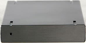 Вид спереди такой же, как у Mobile Hard, только размеры другие. Задний же торец изменился кардинально. Вместо mini-USB применяется вполне стандартный B-разъем. Рядом с ним расположен мощный разъем типа mini-DIN для подключения блока питания. Собственно, это слабое место всех накопителей на базе 3.5″ винчестеров: кроме напряжения 5 В, им требуется и 12 В, так что приходится навсегда забыть о возможности питания по USB, а достаточно большая сила тока при старте не позволяет питаться даже от FireWire, хотя там 12 В есть (недаром в GigaWare/FireWire800 максимальная сила тока увеличена). Выход один — использовать достаточно мощный блок питания, а значит, и работать с накопителем только в пределах прямой досягаемости розетки. А рядом с входом БП расположен простой выключатель питания: нет смысла зря тратить электричество и нагревать винчестер в те моменты, когда он не нужен.