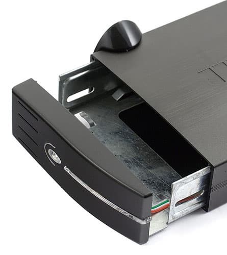 Второе изменение конструкции не сразу заметно, но достаточно полезно — компания отказалась от двухстандартных блоков питания, ранее традиционных. Плюс их очевиден — винчестерам требуется два напряжения питания, так что при соответствующем БП не нужно устанавливать внутри дополнительные преобразователи (являющиеся дополнительным источником тепла). Однако есть и минусы. Первый — соответствующий блок питания крайне трудно подобрать, так что нужно весьма бережно обращаться с фирменным. Второй — обычно используемые в данном случае разъемы типа mini-DIN 4, по многочисленным отзывам, не обладают высокой надежности, так что при частых подключениях/отключениях вскоре выходят из строя. Именно поэтому от подобного схемы давно уже отказалось большинство крупных производителей ВЖД, а теперь по тому же пути пошли и поставщики внешних модулей. Хотя, как уже сказано выше, есть у такого подхода и недостатки.