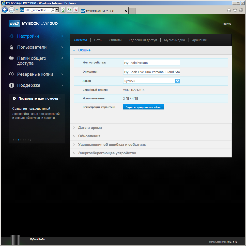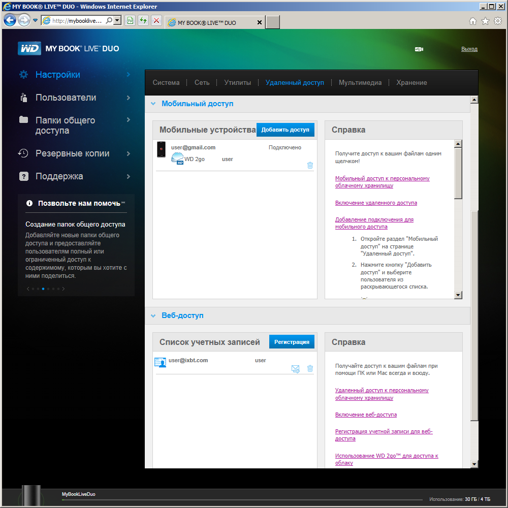 Также надо заметить, что удаленный доступ в данном случае касается только работы с файлами, изменить настройки устройства (например, добавить пользователя) через него нельзя. Эту задачу можно решить обычными средствами для удаленного доступа к основному веб-интерфейсу накопителя с настройкой роутера.
