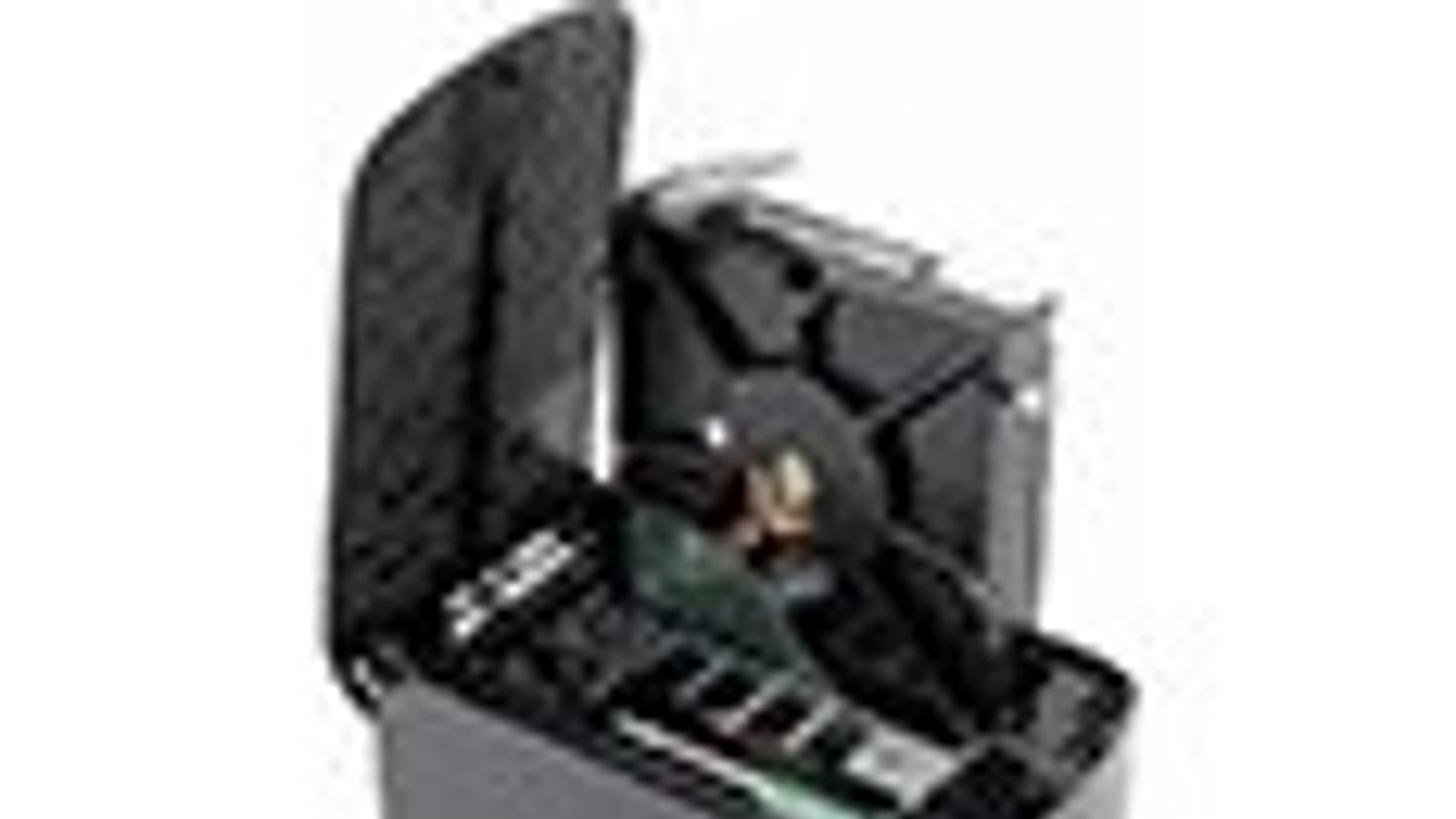 Накопитель имеет необычный вариант расположения винчестеров — вертикально. В данной модели можно самостоятельно менять винчестеры, для этого предусмотрена специальная крышка на верхней панели. Для установки новых дисков понадобится отвертка для перестановки специальных винтов. Отметим, что официально заявлена совместимость только с «зеленой» серией от WD (модель комплектных винчестеров — WD20EARX). Скорее всего, это продиктовано системой охлаждения. В ней нет вентиляторов, что снижает уровень шума и повышает надежность, но ограничивает максимальное тепловыделение устанавливаемых дисков.