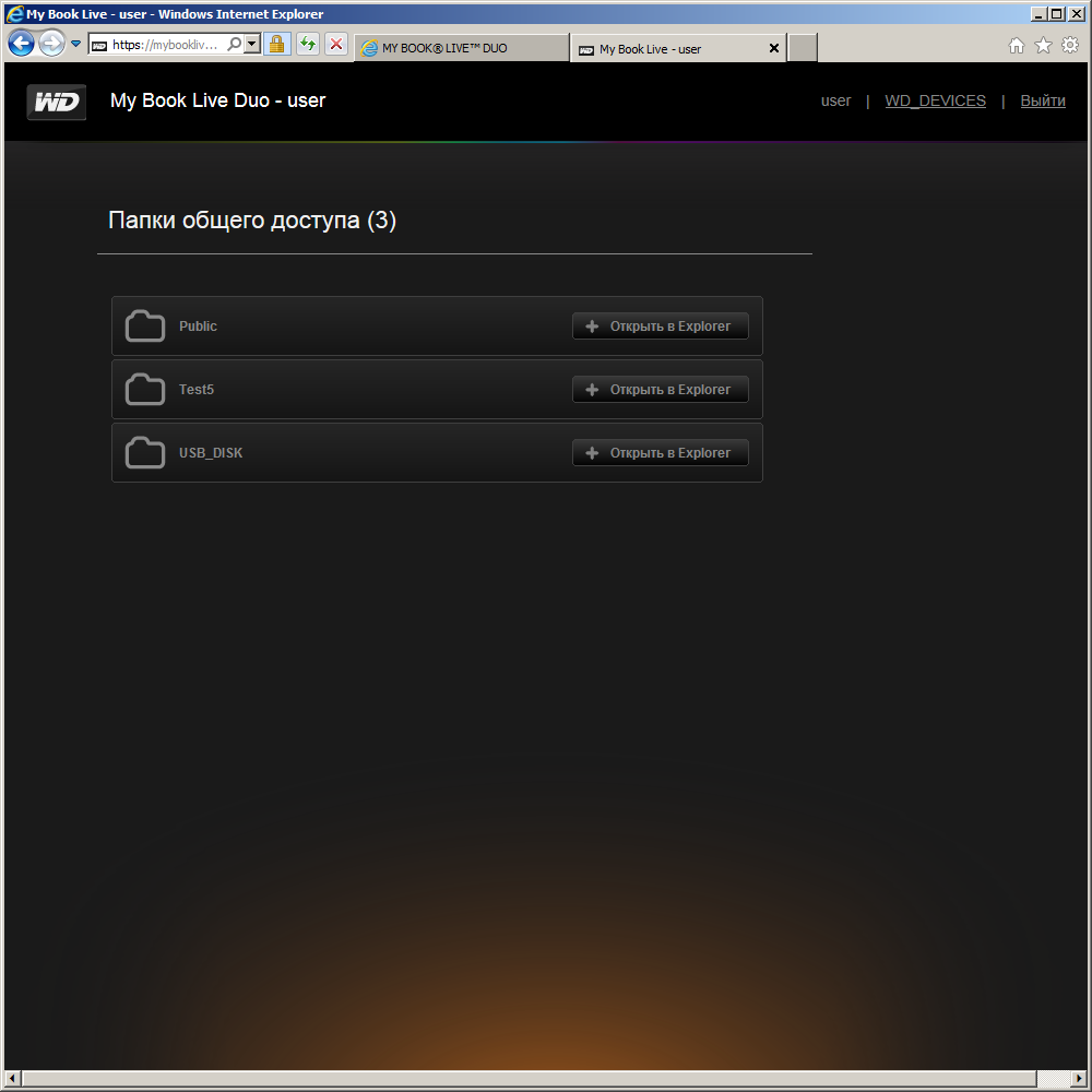 После входа с ним на сервер www.wd2go.com, пользователь видит все доступные ему устройства (напомним, что данный аккаунт привязан к адресу электронной почты и может работать сразу с несколькими разными накопителями) и может подключиться к любому из них. При этом ему потребуется еще ввести пароль локального пользователя данного накопителя. Далее он увидит список доступных ему ресурсов и сможет открыть любой из них в стандартном проводнике Windows или Mac OS. В целом система работает достаточно неплохо и не требует специальных знаний и больших усилий по настройке. Скорость работы зависит от использованных интернет-каналов. В нашем тестировании получились цифры около 2 МБ/с. Этого вполне хватает для комфортной работы с большинством обычных документов.