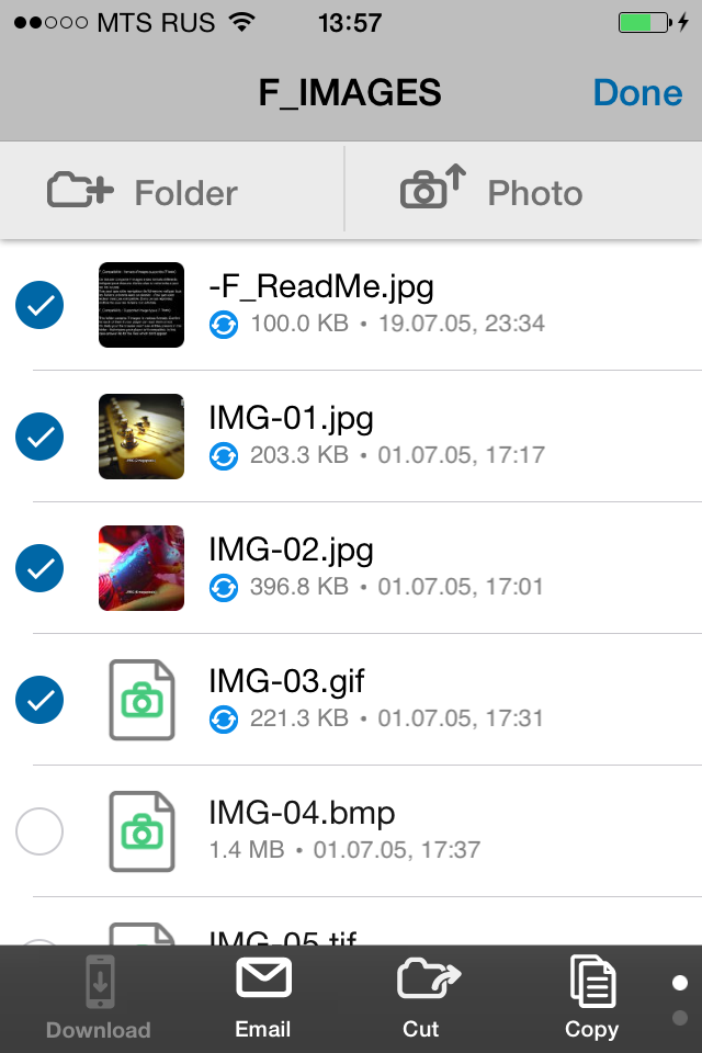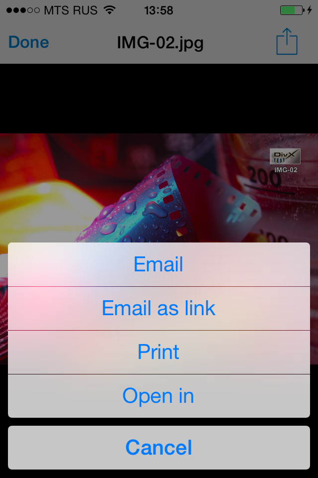 Программа поддерживает открытие мультимедийных файлов напрямую с облачного хранилища. Для этого используются установленные на устройстве программы, а для неподдерживаемых форматов можно попробовать сначала скачать файл на локальный диск и потом использовать внешние утилиты. Есть также операция загрузки документов со смартфона или планшета. В случае Android можно использовать эту операцию для любых файлов, а для iOS загружаются только фотографии и видео из стандартной галереи.