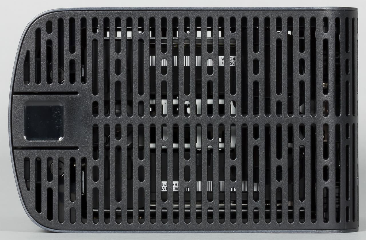 На дне находятся четыре резиновые ножки, а все остальное пространство используется как решетка вентиляции. Верхняя панель корпуса является крышкой для дисковых отсеков и также покрыта отверстиями системы вентиляции.