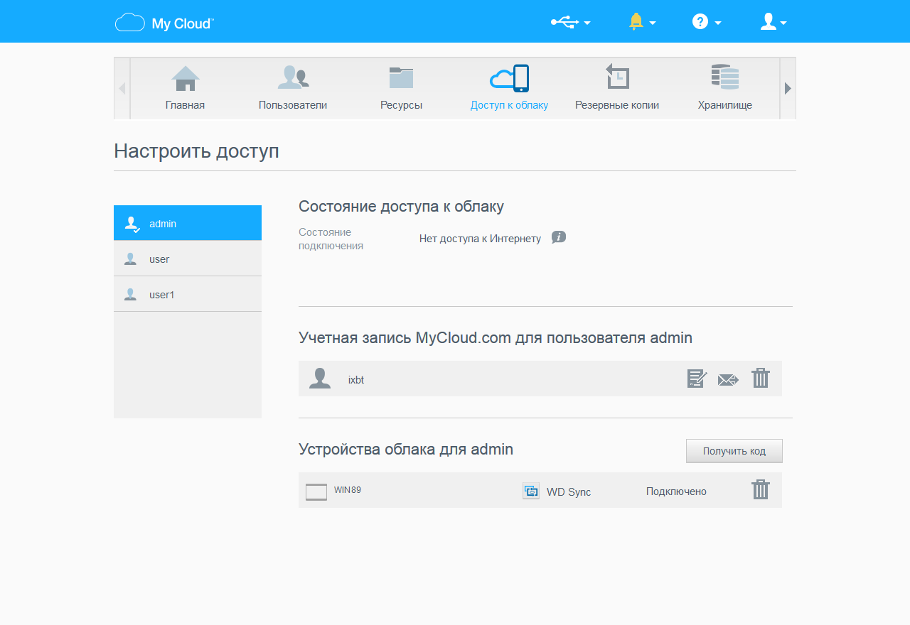 Как уже ясно по названию модели, производитель уделяет особое внимание реализации облачных технологий удаленного доступа. Для работы этого сервиса вам необходимо создать аккаунт на фирменном портале и потом настроить для него соответствие пользователю сетевого накопителя.