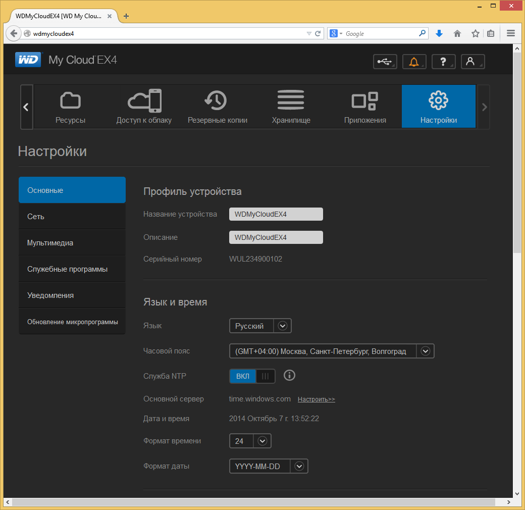 При первом запуске или после сброса настроек предлагается ответить на несколько основных вопросов по конфигурации накопителя. При желании можно здесь же создать аккаунт фирменного облачного сервиса и зарегистрировать устройство. Отметим, что и на этом этапе и в основном веб-интерфейсе присутствует русский язык.
