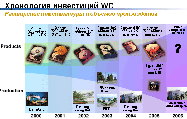 Например, в 2000 году у WD был всего один завод, а сейчас уже четыре.