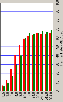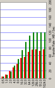 Как видим, и здесь разницы в кэшировании разных объектов на чтение и запись между дисками KS и JS почти нет (разве что на очень крупных файлах у KS есть небольшое преимущество). Хотя по сравнению с WD3200JD кэширование записи крупных (от мегабайта) файлов явно улучшилось, но это не заслуга размера буфера, а следствие смены контроллера и общей оптимизации алгоритмов firmware.