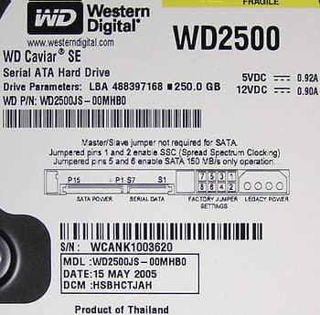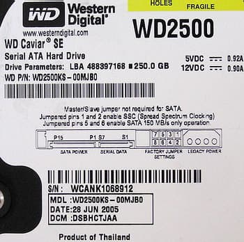 - WD Caviar SE WD2500JD, 250 Гбайт (3 пластины), Serial ATA 1.0