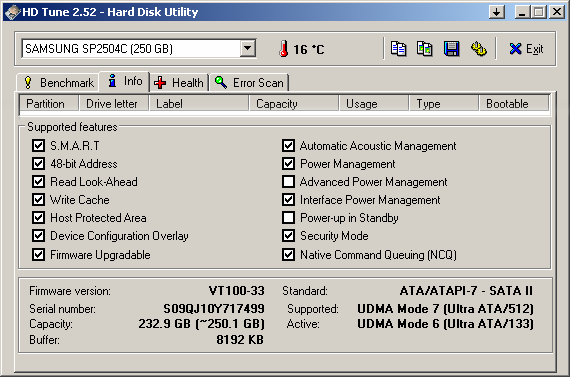 тогда как 88i6545 (у WD) ограничивается традиционным UDMA Mode 6 (UltraATA/133), см., например, скриншоты утилиты HD Tune 2.52 выше и ниже.