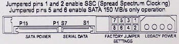 Радует, что контроллер позволяет установить перемычками не только нужную скорость интерфейса Serial ATA на стороне диска (3 Гбит/с или 1,5 Гбит/с), но также включить или выключить частотное размывание спектра интерфейса SATA (это может потребоваться для совместимости с различными контроллерами).