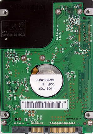 А так выглядит «гермоблок» диска WD1600BEVS с обратной стороны (со снятой печатной платой контроллера):