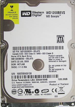 - WD Scorpio ML60 WD1200BEVS, 120 Гбайт SATA
