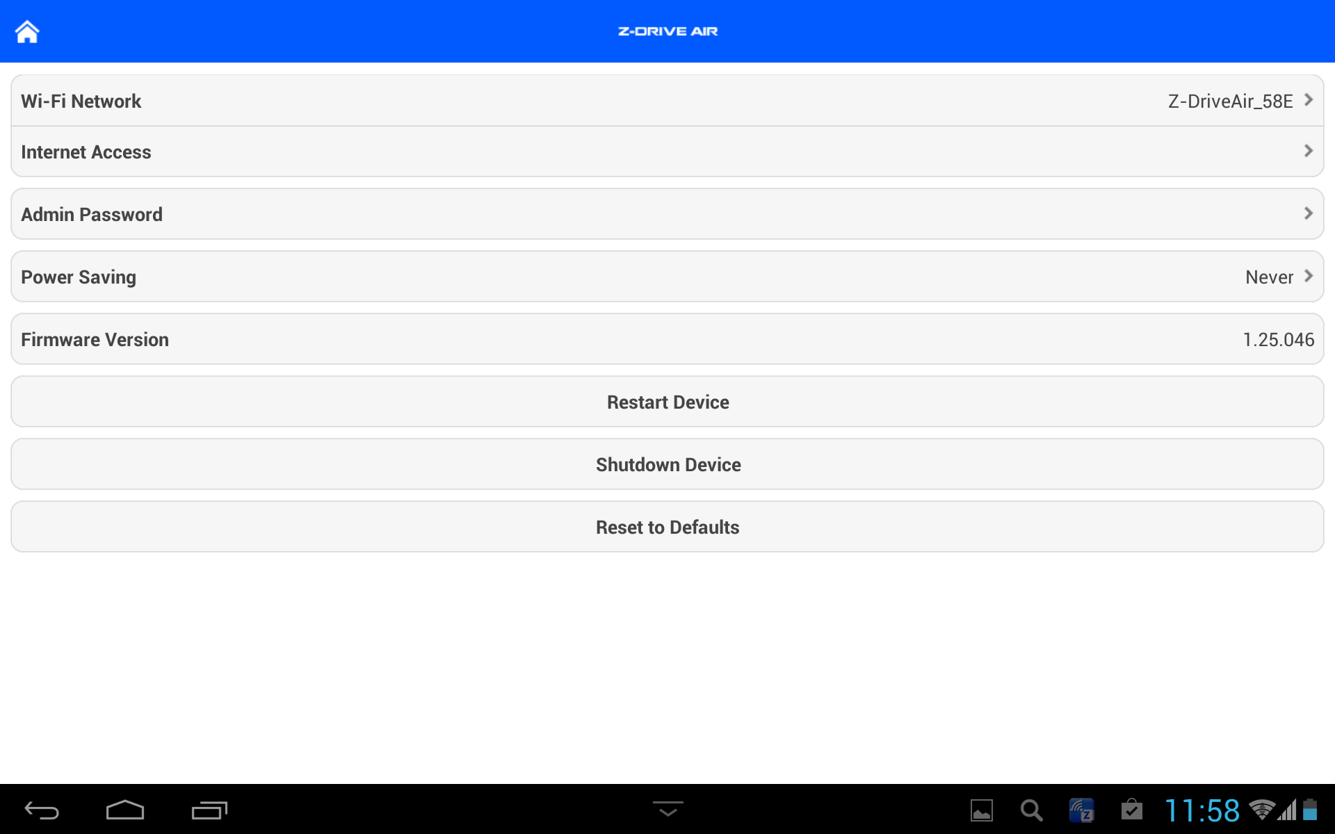 Встроенное программное обеспечение обеспечивает базовый набор функций и не выделяется какими-либо интересными особенностями, кроме «сквозного» подключения к интернету через внешний роутер. Фирменная утилита Z-Drive Air для Android и iOS не впечатлила своими возможностями, но вполне работоспособна. В случае работы с мобильными устройствами на базе Android, возможно, удобнее будет использовать стандартный сетевой протокол SMB. По крайней мере, это позволит использовать ваш любимый плеер для всех типов контента. Если же вы планируете работу с моделями на iOS, то очень желательно ограничиться штатно поддерживаемыми этой мобильной операционной системой форматами.